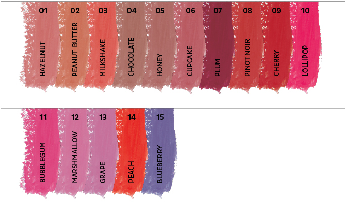 15 cores disponíveis